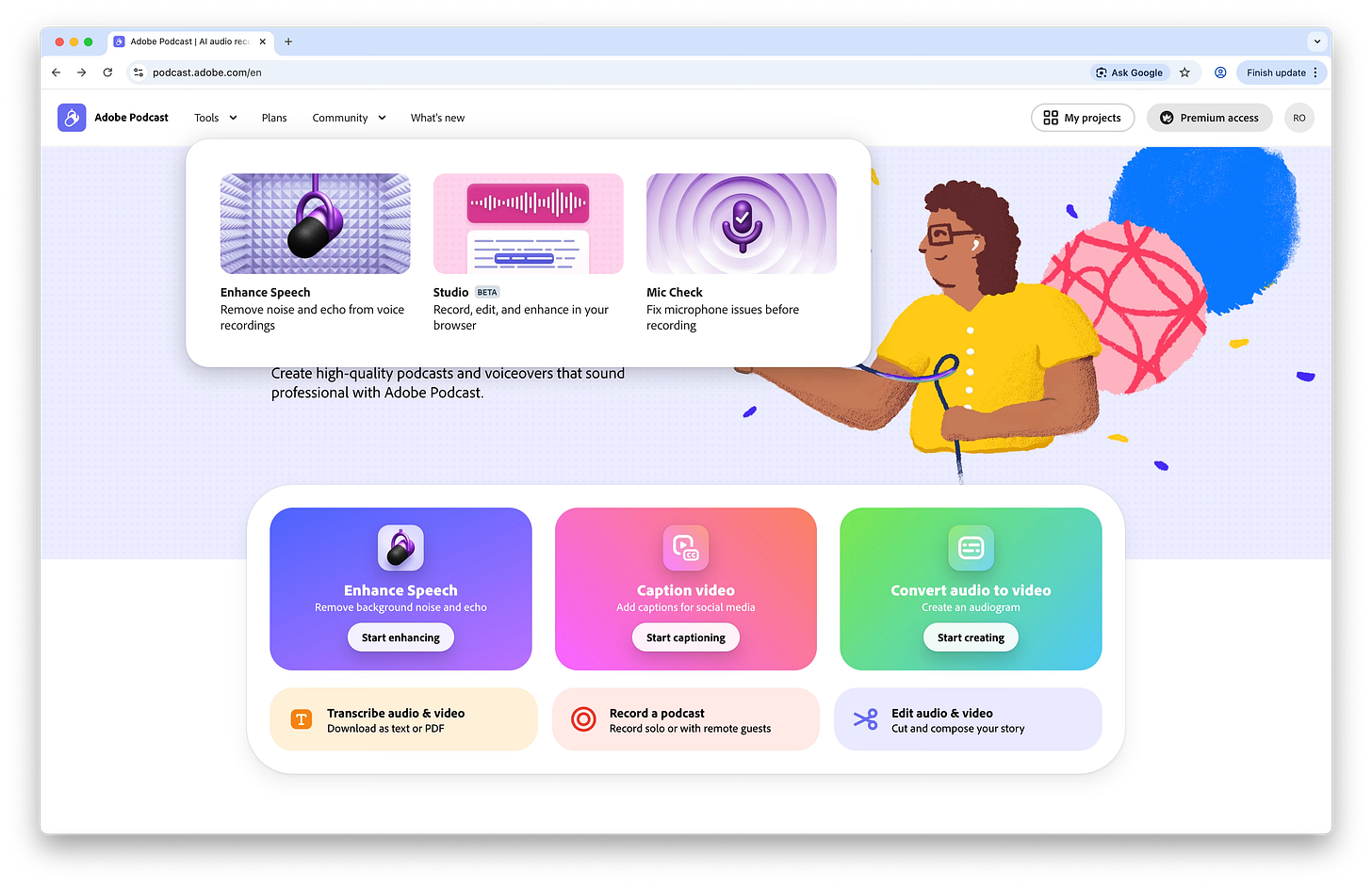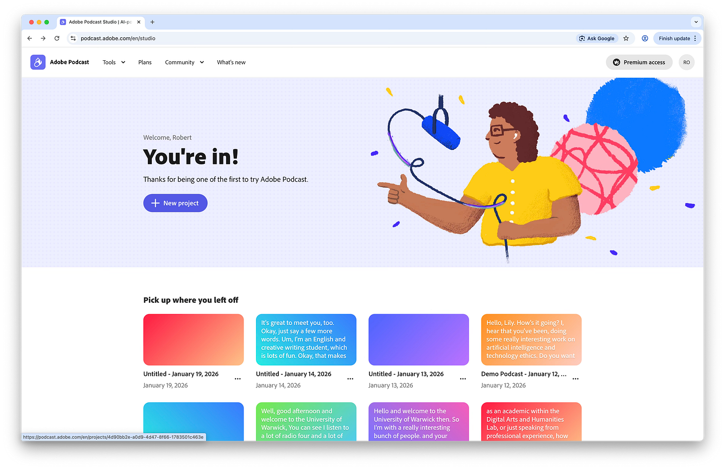 I don’t tend to do much editing for my podcasts, preferring the natural approach. But if you need to, the Adobe Podcast Studio makes it easy.